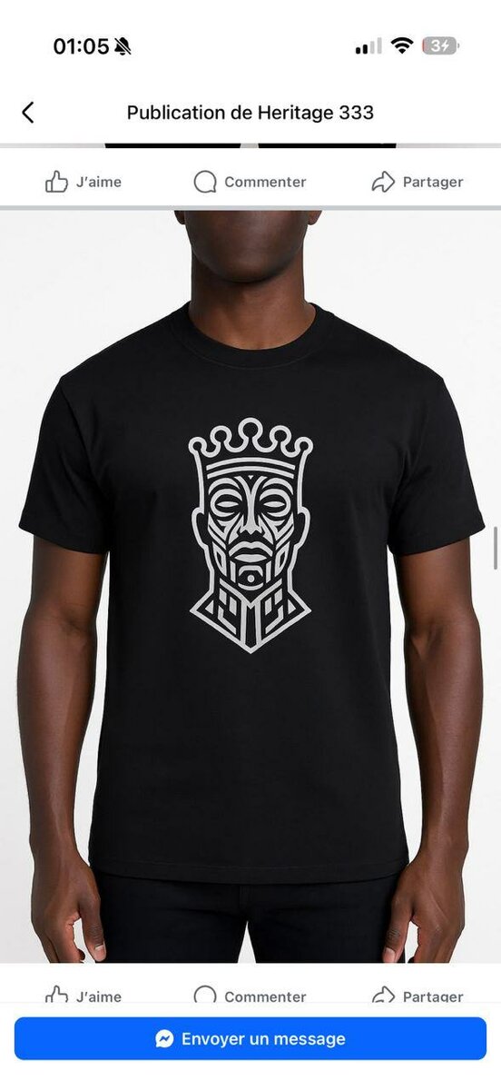 Découvrez notre t-shirt noir avec un design tribal de roi. Confectionné en coton doux, ce t-shirt offre confort et style. Parfait pour un look unique et affirmé.