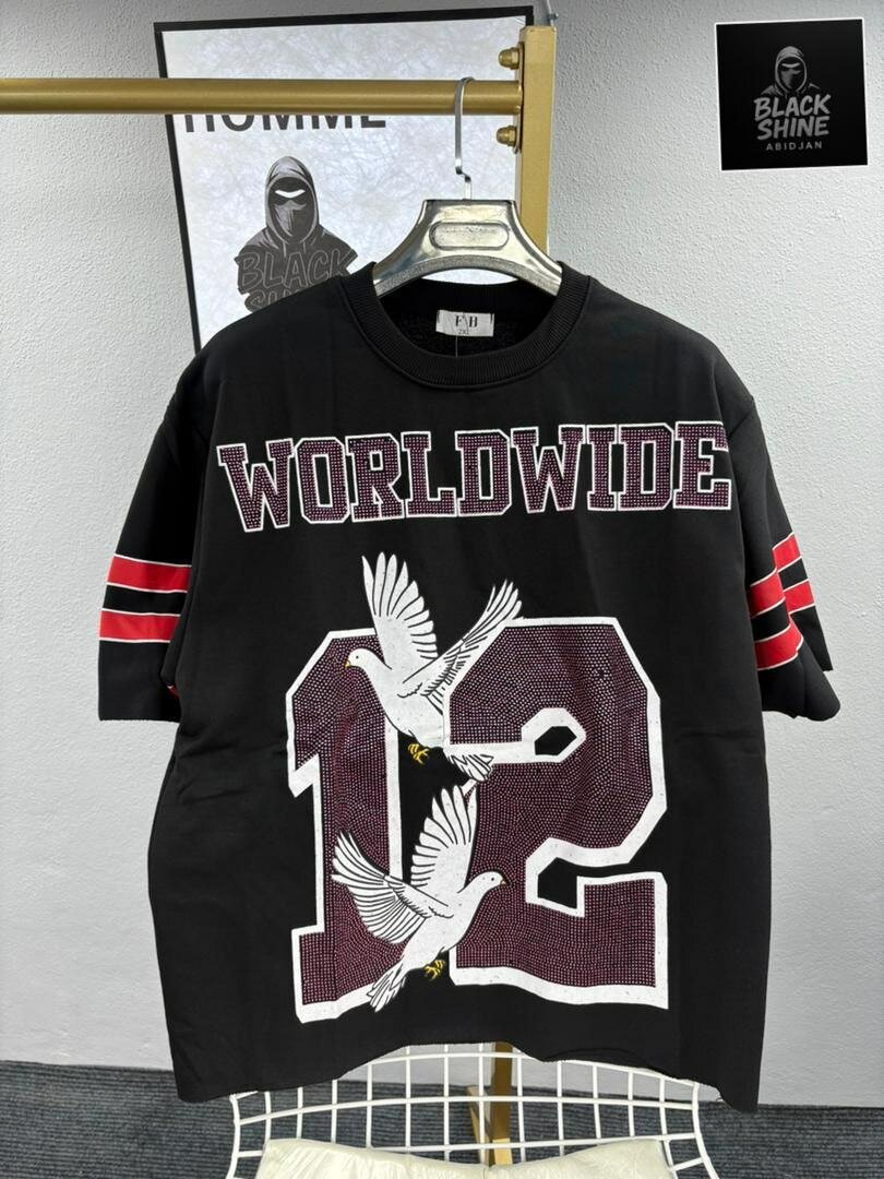 Découvrez ce T-shirt tendance avec imprimé 'Worldwide 12', parfait pour une allure décontractée et stylée. Ses graphismes audacieux et ses rayures ajoutent une touche sportive. Idéal pour les sorties entre amis ou les promenades en ville, ce T-shirt deviendra un incontournable de votre garde-robe.