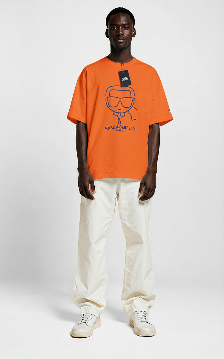 T-shirt Karl Lagerfeld en orange vif, parfait pour un look tendance et décontracté. Fabriqué en coton de haute qualité pour un confort optimal. Idéal pour les sorties en ville ou un style casual-chic.