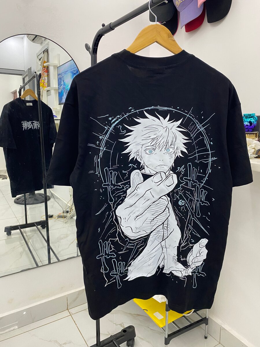 T-shirt avec impression manga Gojo, parfait pour les fans d'anime et de manga.