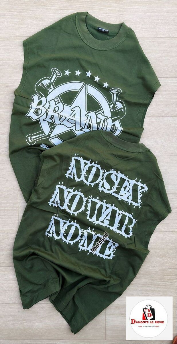 Exprimez votre style avec ce T-shirt militaire vert, orné de designs audacieux. Confortable et idéal pour un look décontracté et impactant. Parfait pour toutes les occasions.