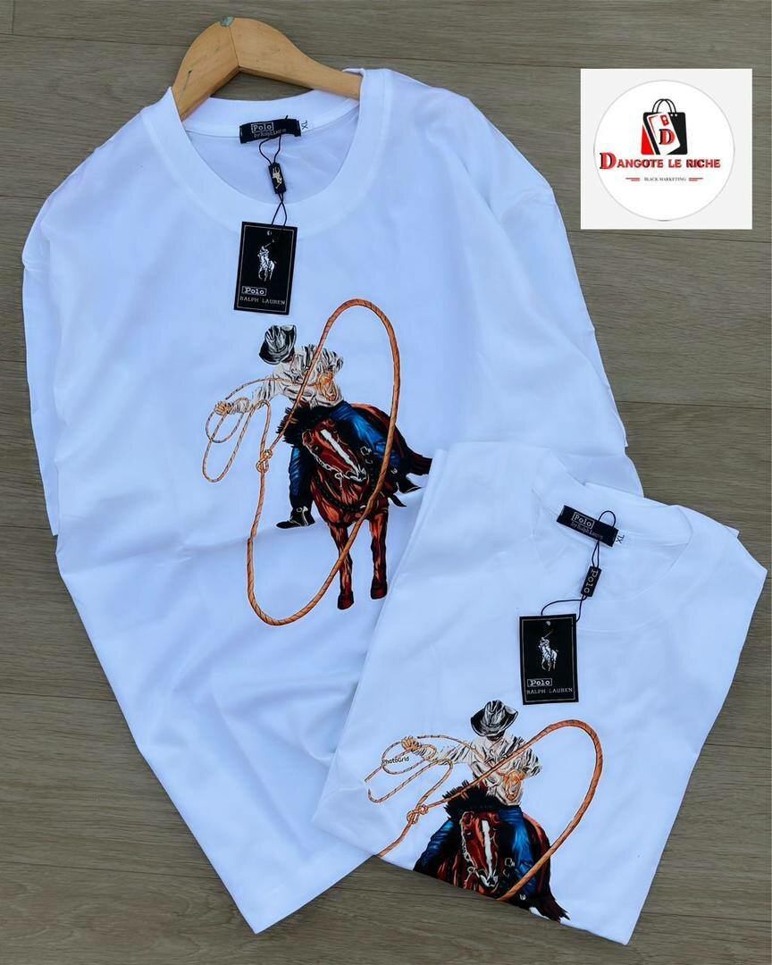 T-shirt en coton blanc avec motif western captivant, parfait pour un look décontracté et stylé. Idéal pour les amateurs de mode unique et confortable.