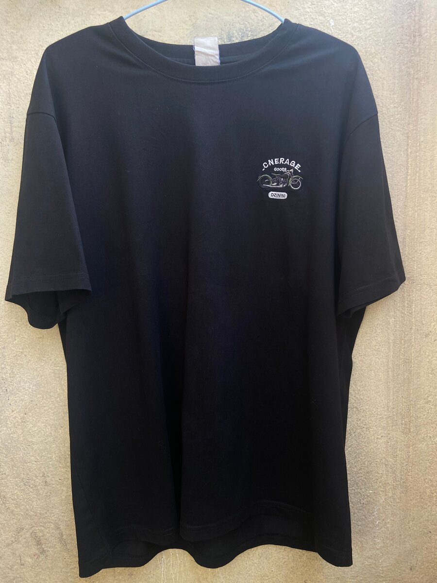 T-shirt noir avec motif vintage de motard. Parfait pour les amateurs de motos et le style décontracté. Coton doux et confortable, idéal pour un usage quotidien ou lors de sorties moto. Broderie discrète à l'avant, design audacieux à l'arrière.