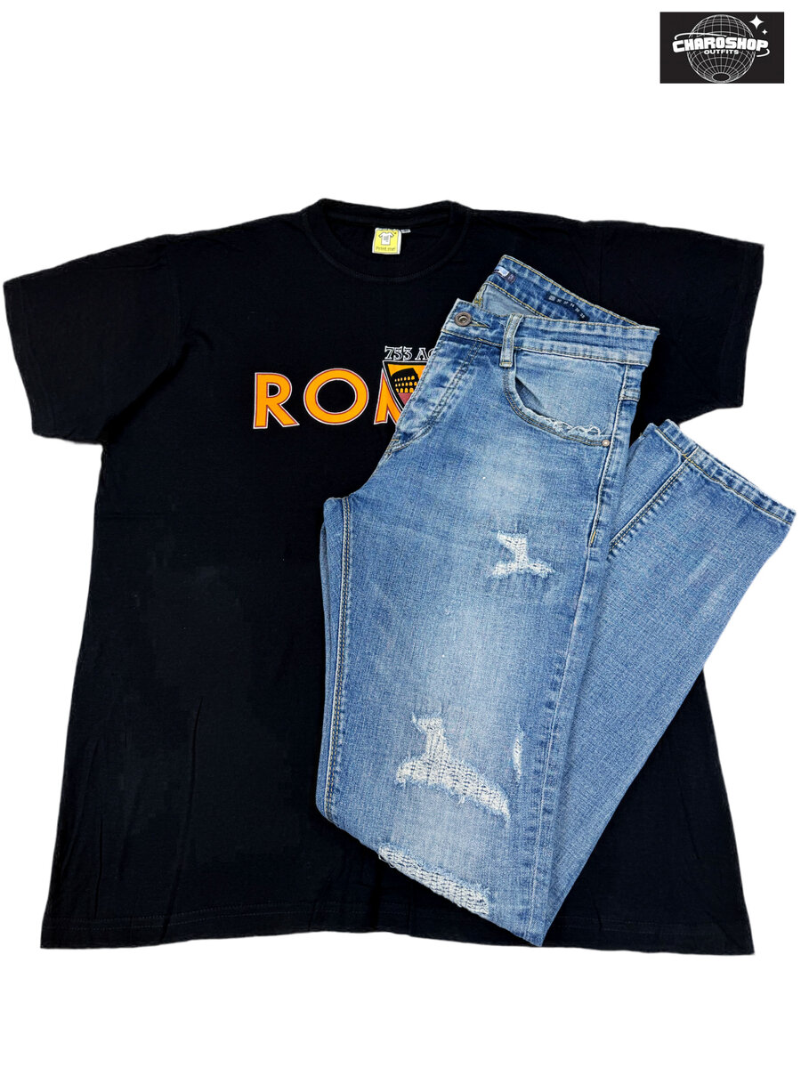 T-shirt noir avec jeans