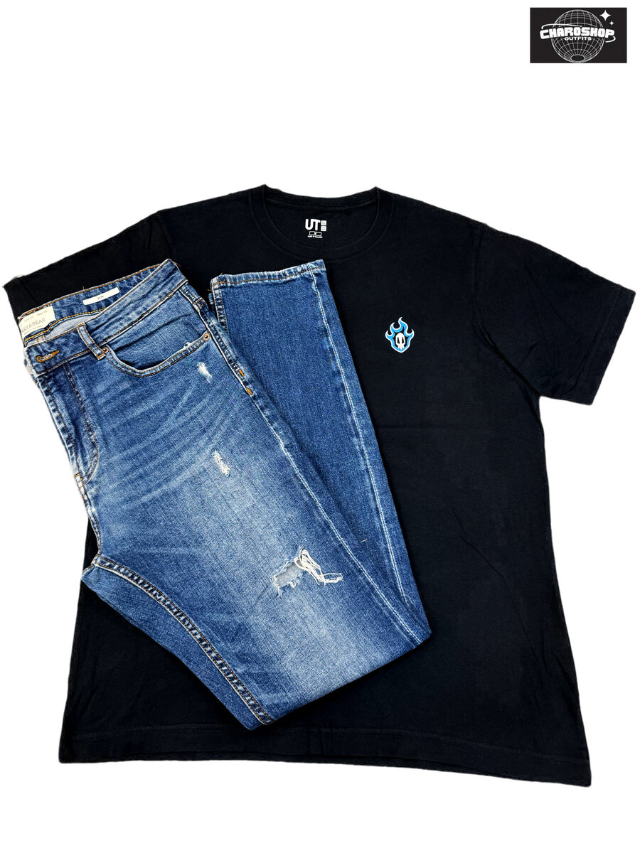 T-shirt noir et jeans délavé pour homme