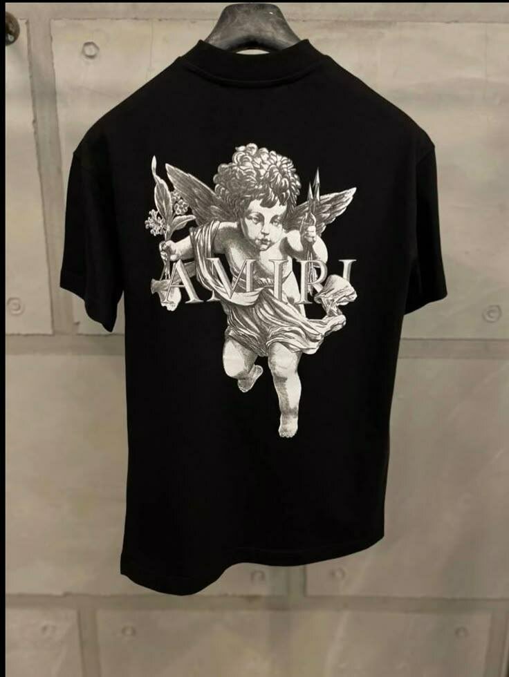 Découvrez ce t-shirt noir pour homme orné d'un motif graphique d'un ange. Conçu pour un style urbain et moderne, ce vêtement est idéal pour les amateurs de mode streetwear.