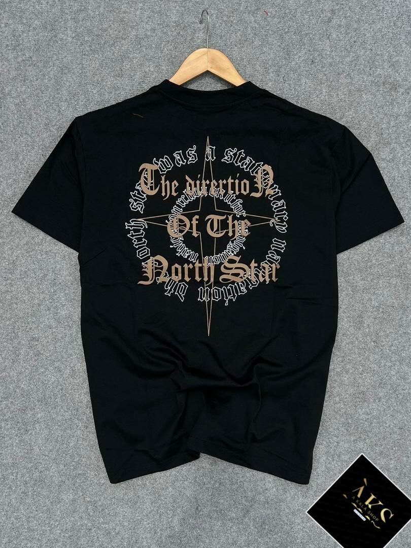 T-shirt noir décontracté avec impression graphique unique. Parfait pour un look moderne et tendance. Doux, confortable, idéal pour le quotidien ou les sorties.