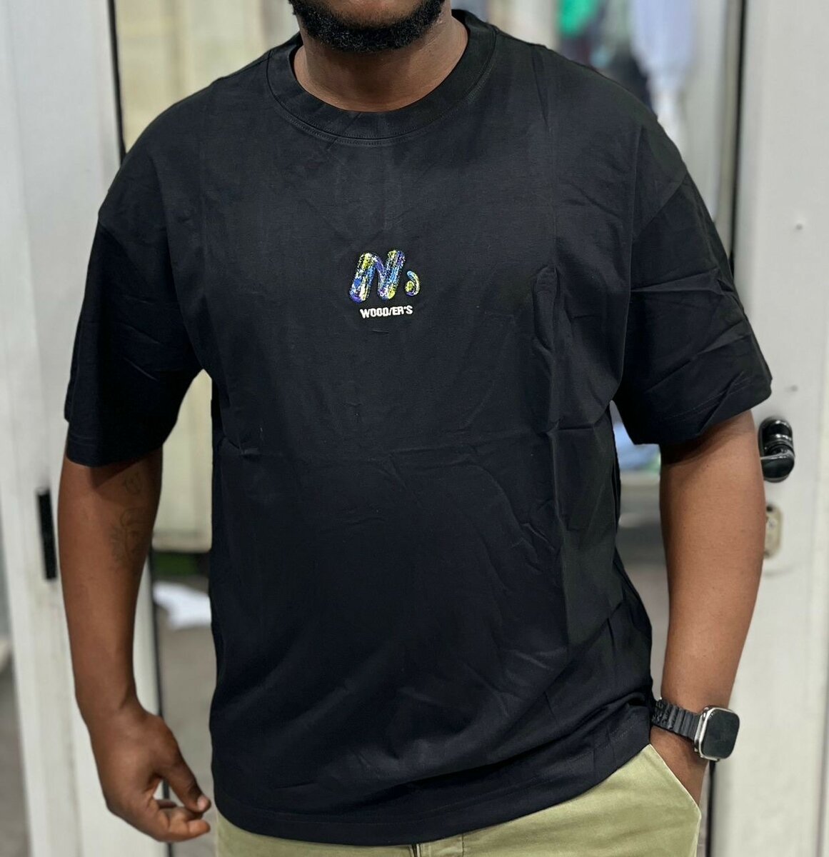 Découvrez ce T-shirt noir tendance, parfait pour un style décontracté mais chic. Confectionné en coton doux et respirant, il assure confort et durabilité. Le motif unique sur la poitrine ajoute une touche d'originalité à votre tenue. Idéal pour le quotidien ou les sorties entre amis. Associez-le avec un jean ou un pantalon décontracté pour un look impeccable.