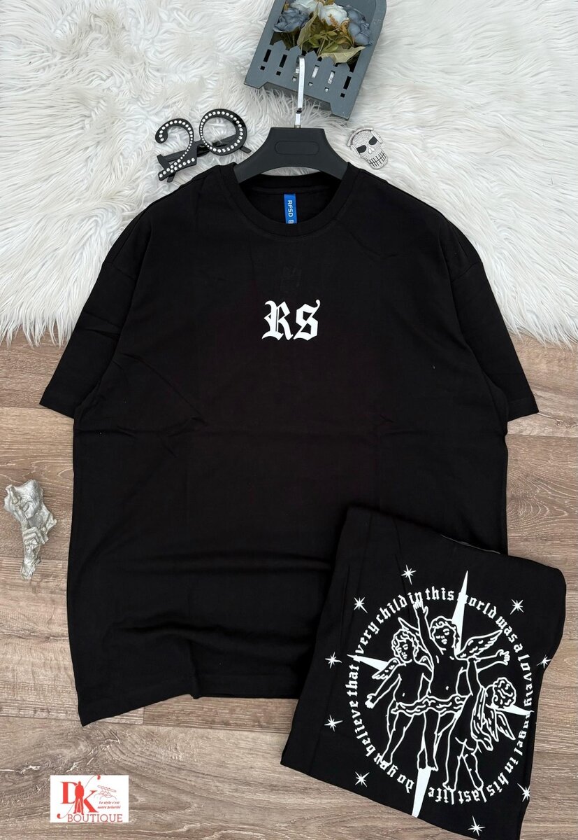 T-shirt noir style tendance avec motif RS. Confortable et idéal pour un usage quotidien. Parfait pour les amateurs de mode urbaine.
