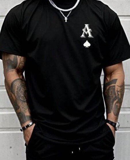 T-shirt noir élégant pour homme avec motif A et pique. Parfait pour un look décontracté et moderne. Matériau confortable et résistant. Idéal pour toutes les occasions.