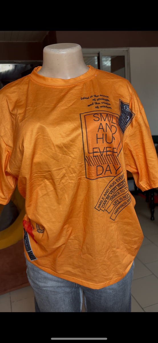 Ajoutez une touche de style à votre garde-robe avec ce t-shirt orange vif orné d'un motif graphique unique. Parfait pour un look décontracté et tendance. Idéal pour être porté au quotidien ou lors de sorties entre amis, il apporte une note de couleur et de bonne humeur à votre journée.