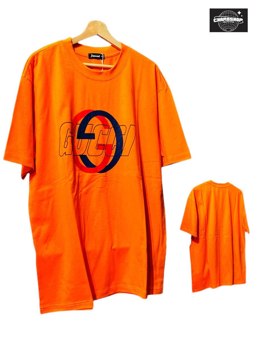 T-shirt orange homme oversize
