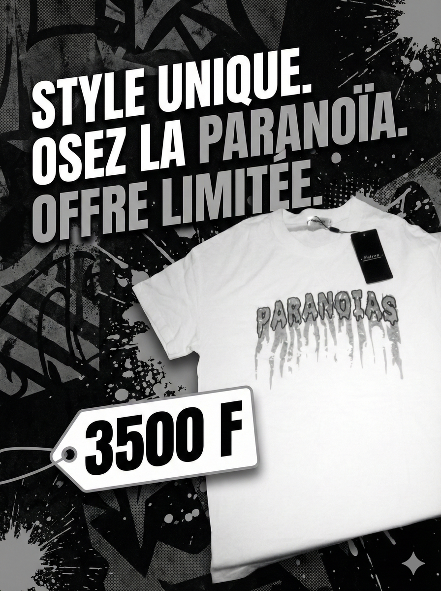 Ne laisse pas le doute t'envahir. Affiche ton caractère avec le T-shirt "PARANOIAS". Un design streetwear audacieux pour ceux qui n'ont pas peur d'être différents.