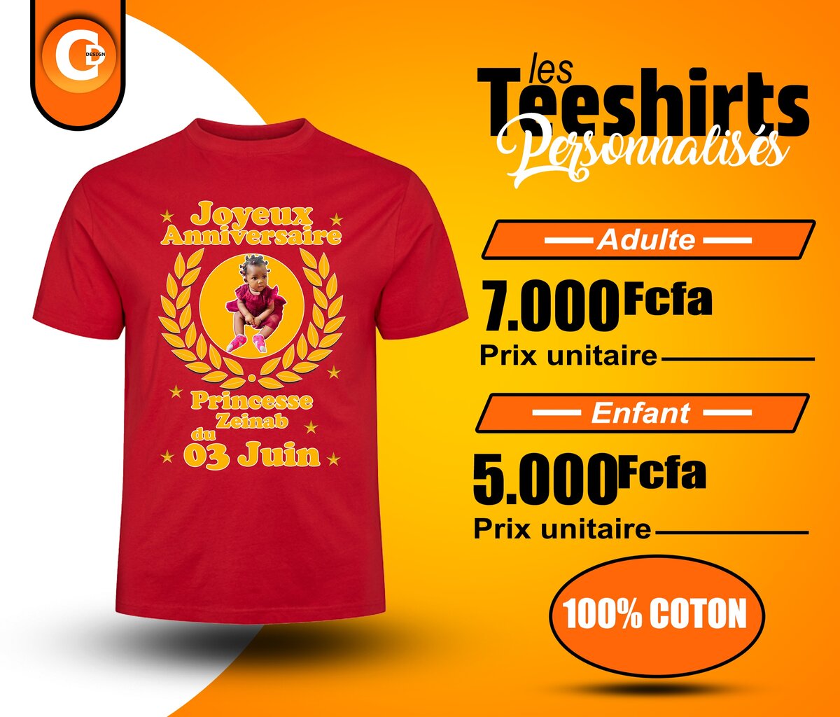 Offrez un T-shirt personnalisé en coton pour célébrer les anniversaires. Disponibles pour adultes et enfants, ces T-shirts sont parfaits pour des fêtes inoubliables et uniques.