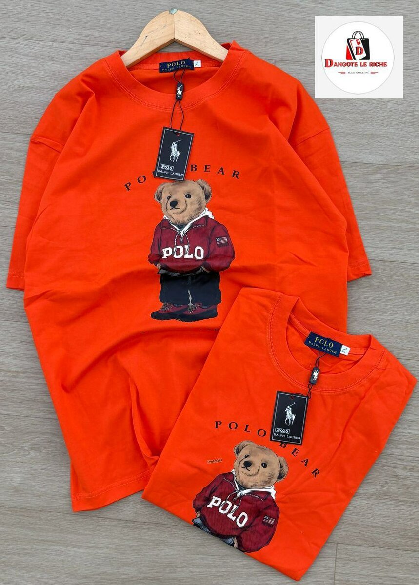 Découvrez notre t-shirt Polo Bear en orange vif, parfait pour ajouter une touche de fun à votre garde-robe. Fabriqué en coton de qualité, son design iconique de l'ours en tenue Polo attire l'œil. Idéal pour un look décontracté et tendance.