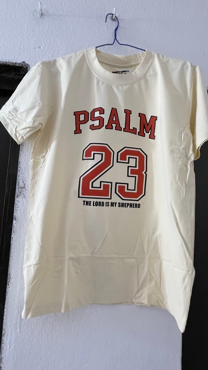 T-shirt tendance avec imprimé "Psalm 23". Confortable et stylé, idéal pour un look décontracté. Fabriqué en coton doux. Parfait pour la plage, le sport ou une sortie entre amis.