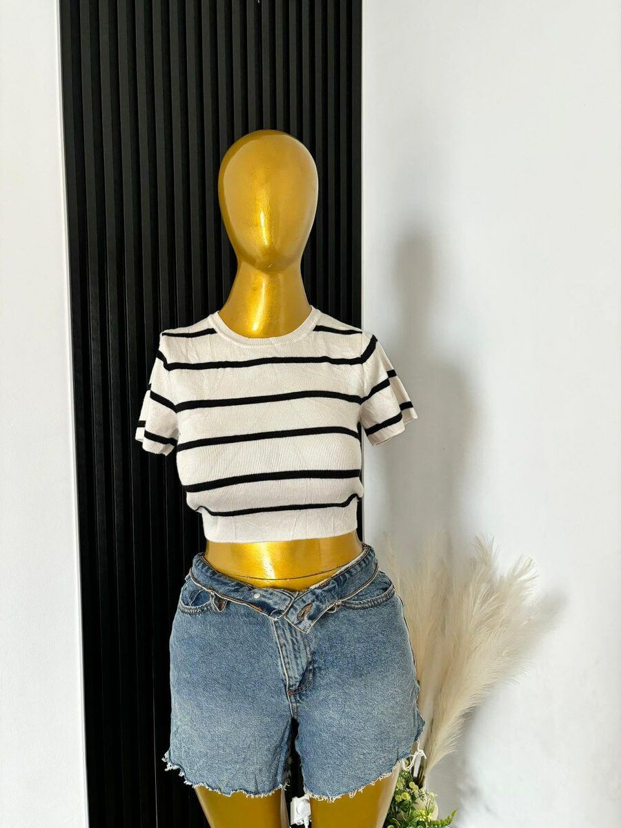 T-shirt rayé pour femme, parfait pour un look décontracté et chic. Fabriqué en matériau doux pour un confort optimal, ce t-shirt se marie parfaitement avec des shorts ou des jeans pour une tenue estivale idéale. Idéal pour les sorties entre amis ou les journées détendues.