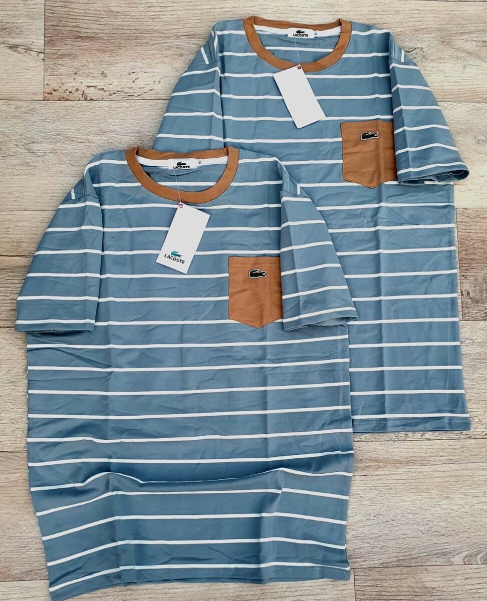 T-shirt rayé bleu et blanc avec poche, pour un style décontracté et moderne. Parfait pour les sorties décontractées ou les journées d'été. Confortable et stylé.
