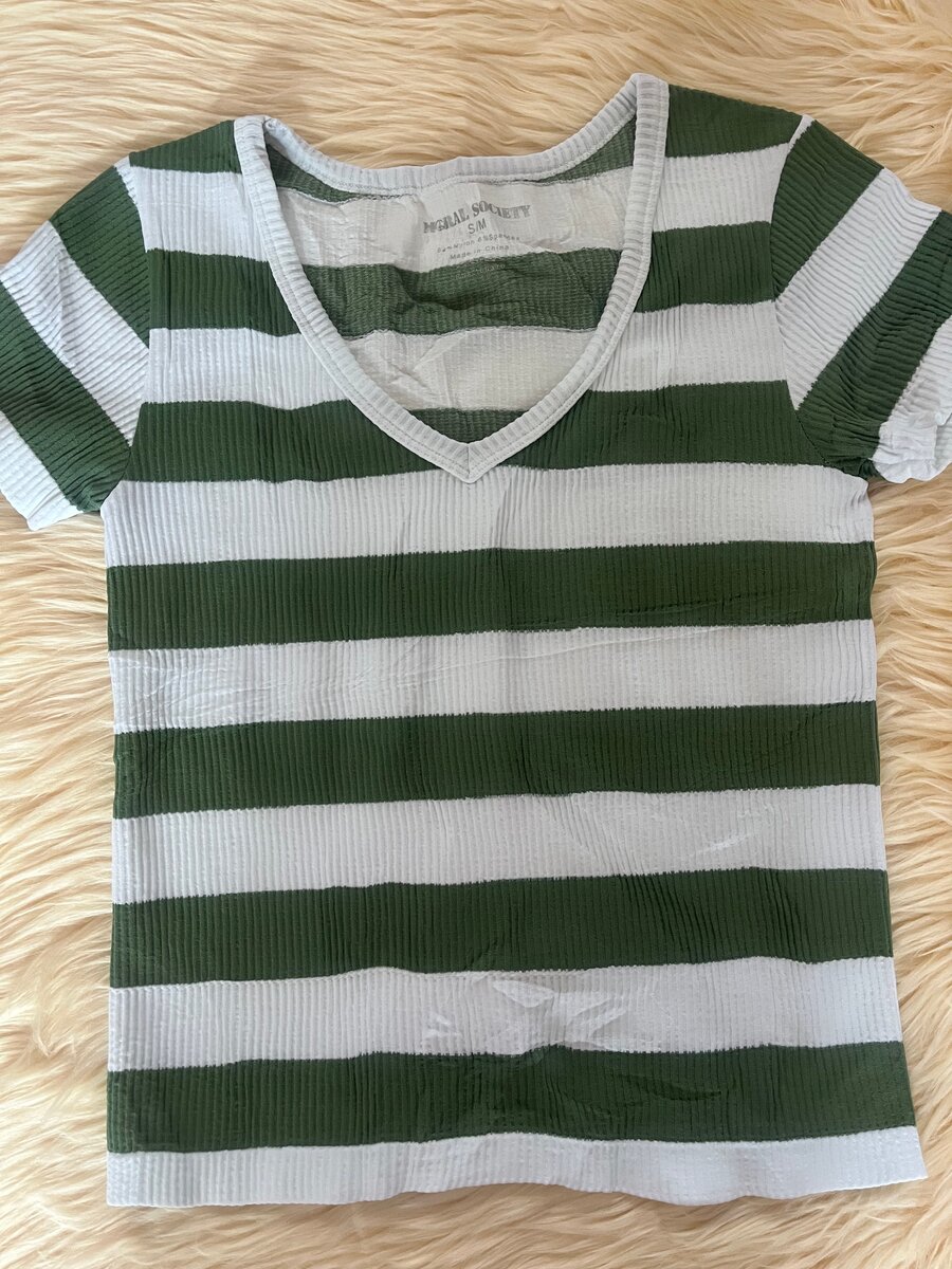 Découvrez ce t-shirt rayé vert et blanc pour femme, idéal pour un look casual et tendance. Confectionné dans un tissu doux et respirant, il offre un confort optimal tout au long de la journée. Parfait pour un style décontracté ou pour associer avec votre jean préféré.