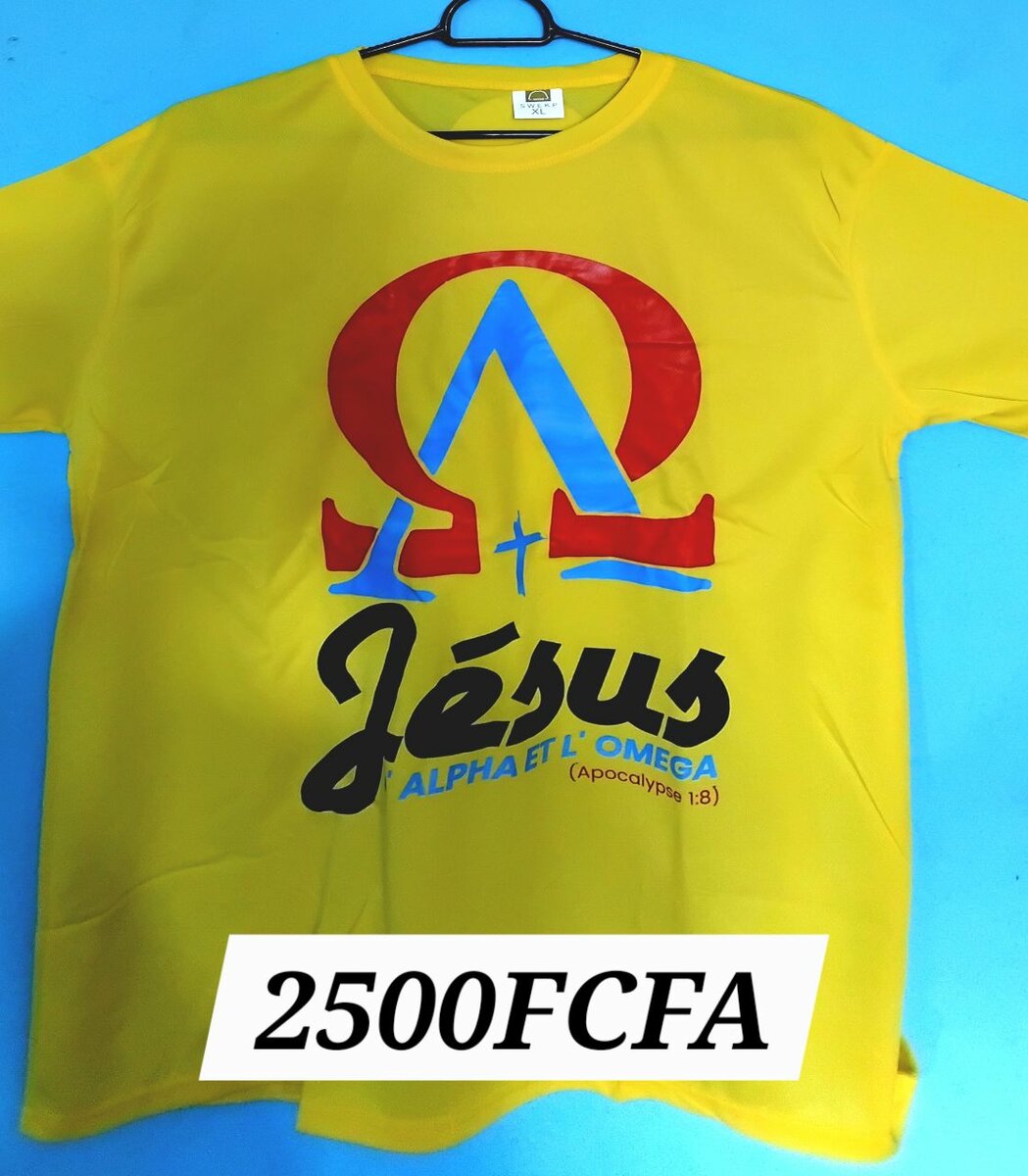 T-shirt confortable avec design inspirant 'Jésus l'Alpha et l'Oméga'. Idéal pour les croyants cherchant à exprimer leur foi avec style. Disponible en plusieurs couleurs vives, parfait pour un usage quotidien ou des événements religieux.