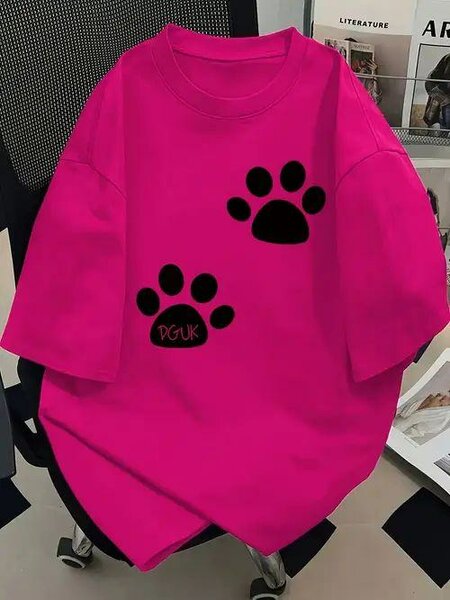 T-shirt rose avec empreintes de patte noires