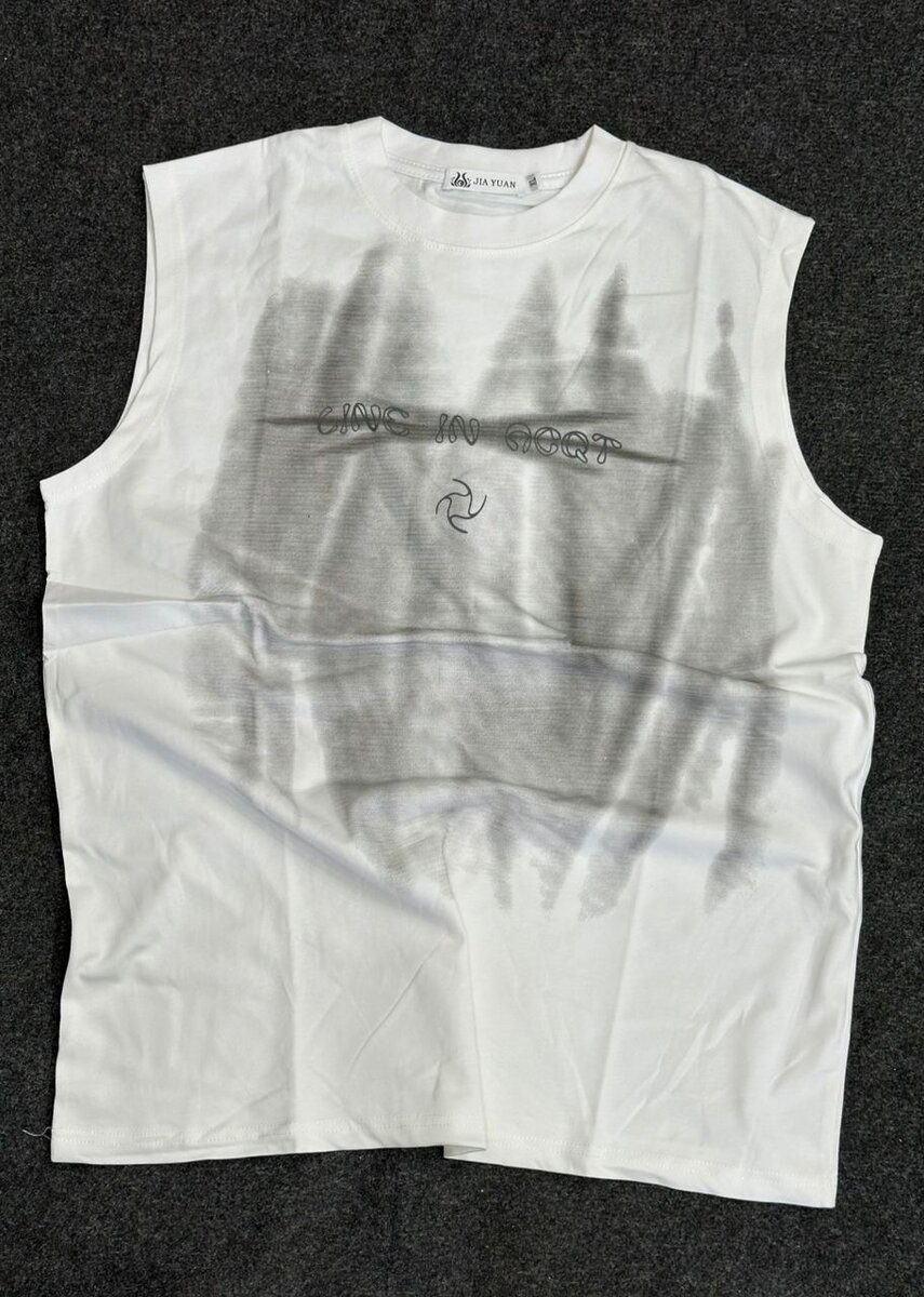 Découvrez ce t-shirt sans manches avec impression artistique unique. Fabriqué en coton doux, il offre confort et style. Parfait pour les journées décontractées ou les séances d'entraînement. Complétez votre garde-robe avec cette pièce tendance et polyvalente.