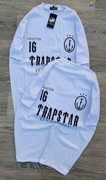 T-shirts Trapstar blancs femme, logo graphique noir, manches longues, style streetwear neuf avec étiquette.