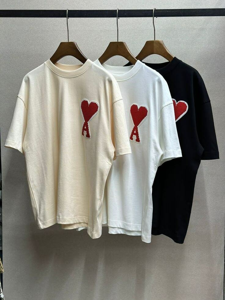 T-shirt unisexe décontracté avec motif cœur distinctif. Disponible en trois couleurs élégantes : blanc cassé, blanc et noir. Parfait pour un style moderne et confortable au quotidien.