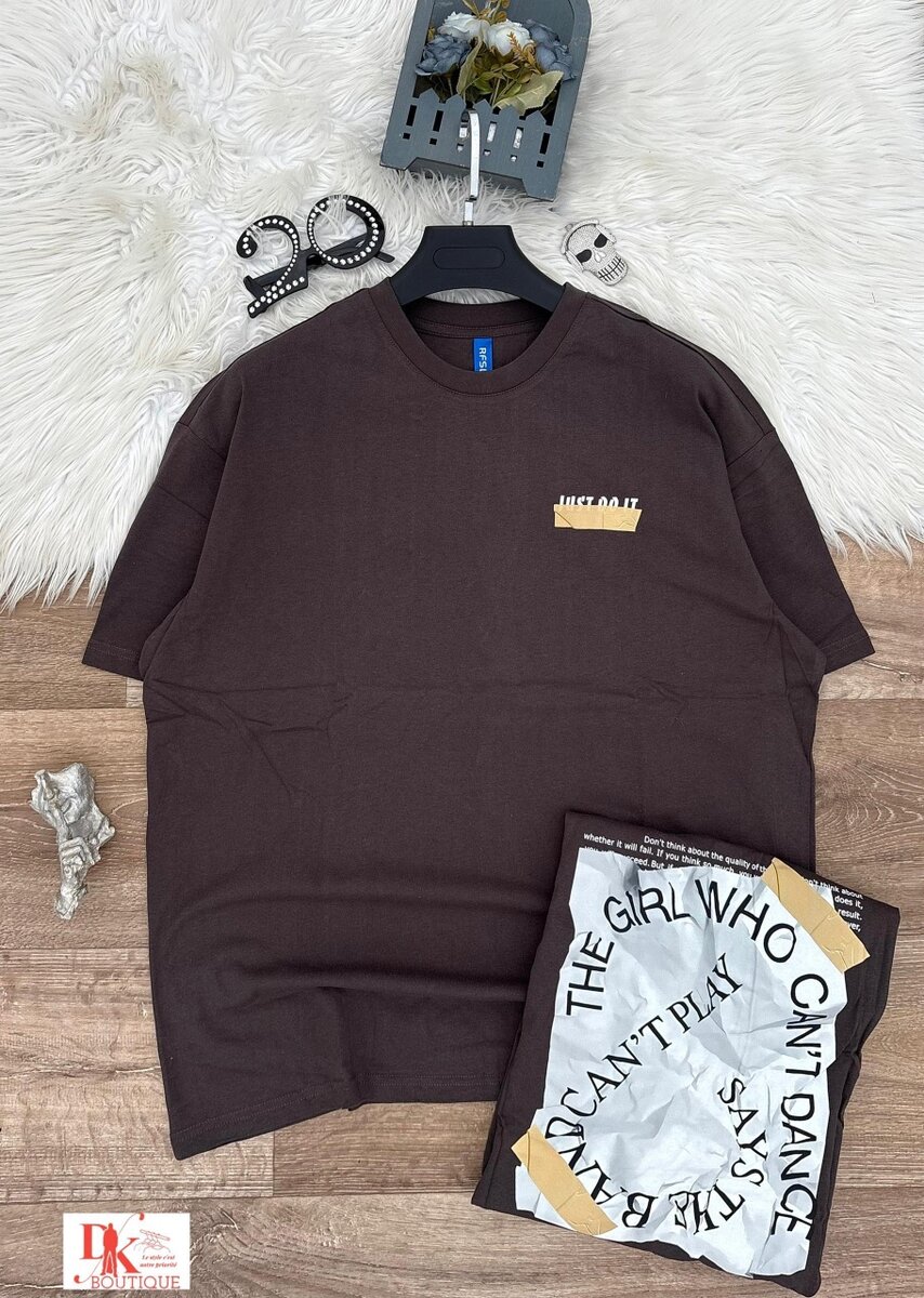 T-shirt unisexe marron en coton doux avec imprimé moderne. Style décontracté parfait pour toutes occasions. Idéal pour ceux qui aiment exprimer leur personnalité unique à travers leur tenue. Confort et style réunis.
