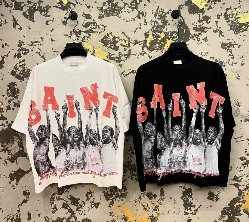 Adoptez un style unique avec ce t-shirt unisexe de la marque SAINT. Disponible en blanc et noir, ce modèle moderne avec son imprimé audacieux est parfait pour un look décontracté. Idéal pour toutes vos sorties, il s'accorde facilement avec d'autres pièces de votre garde-robe. Conçu pour le confort et l'élégance, c'est le choix parfait pour affirmer votre personnalité.
