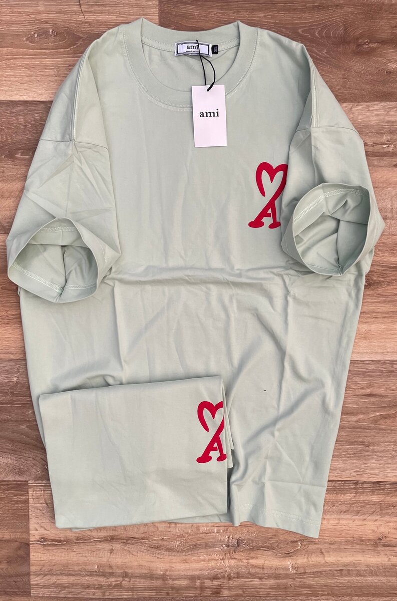 T-shirt vert ami avec logo cœur rouge, idéal pour un look décontracté et stylé. Conçu en tissu doux pour un confort optimal. Un choix parfait pour les sorties entre amis ou les journées décontractées.