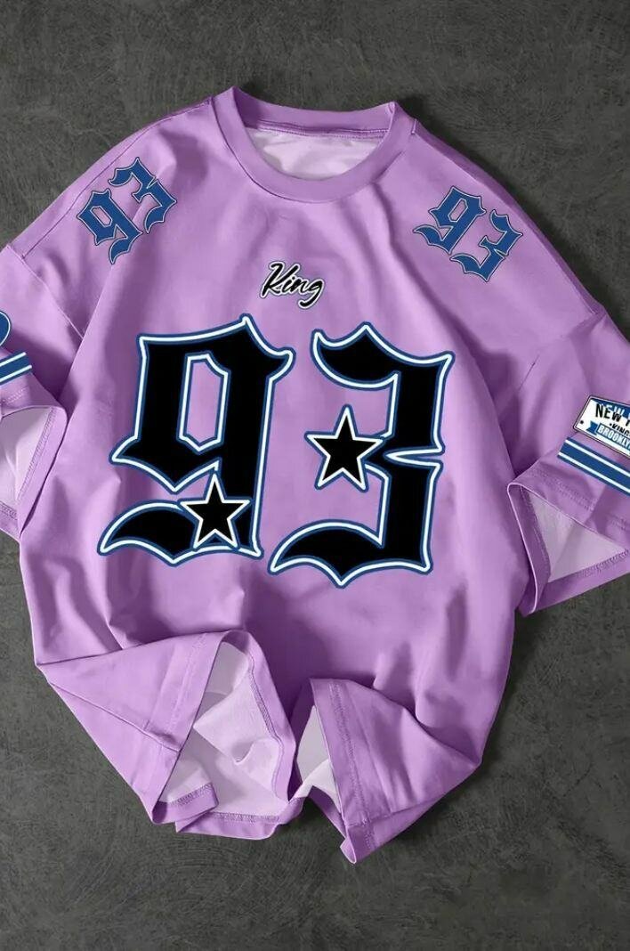 Ce t-shirt violet avec le motif 'King 93' est idéal pour un look sportif tendance. Fabriqué en coton doux, il offre confort et style. Parfait pour les journées décontractées ou les sorties entre amis.