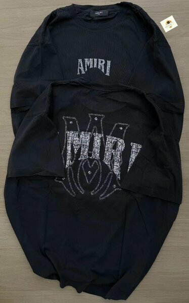 Pack de t-shirts Amiri noirs, logo blanc, neufs. Style premium et urbain, chic épuré. Parfait pour toute occasion.