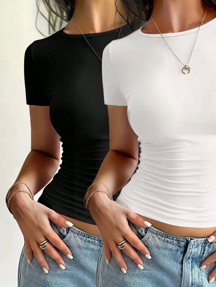 Découvrez le confort parfait avec ce lot de deux T-shirts basiques pour femme. En noir et blanc, ils sont idéaux pour toutes occasions. Conçus en coton doux et extensible, ces T-shirts offrent une coupe ajustée et mettent en valeur votre silhouette. Parfaits pour un look décontracté ou comme sous-vêtement, ils sont un indispensable de votre garde-robe.