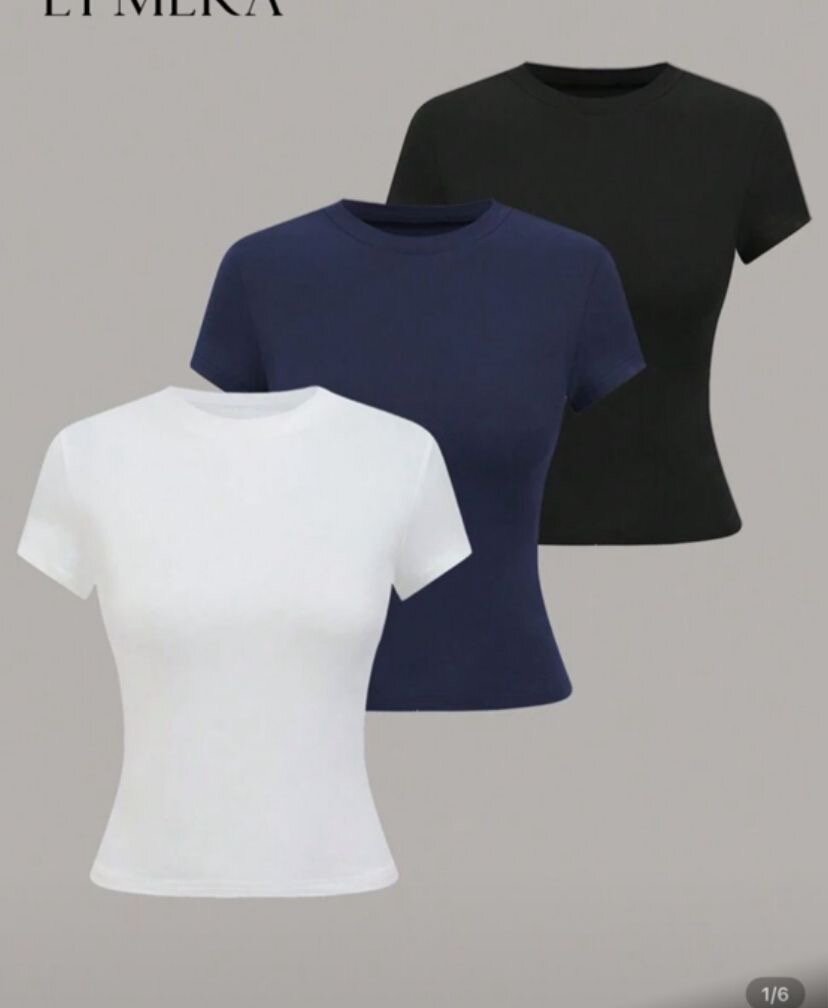 Lot de t-shirts basiques pour femme, idéal pour un look décontracté au quotidien. Confectionnés en coton doux et respirant, ces t-shirts assurent confort et style en toute occasion. Parfaits pour le bureau, les sorties ou la détente à la maison.