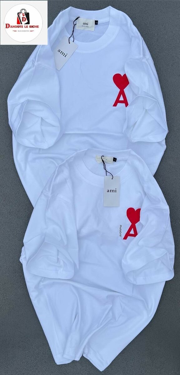 Découvrez ces élégants T-shirts blancs arborant un logo cœur rouge, parfaits pour ajouter une touche d'amour à votre look quotidien. Confectionnés avec un coton doux, ils garantissent confort et style. Idéals pour un usage quotidien ou des occasions décontractées.