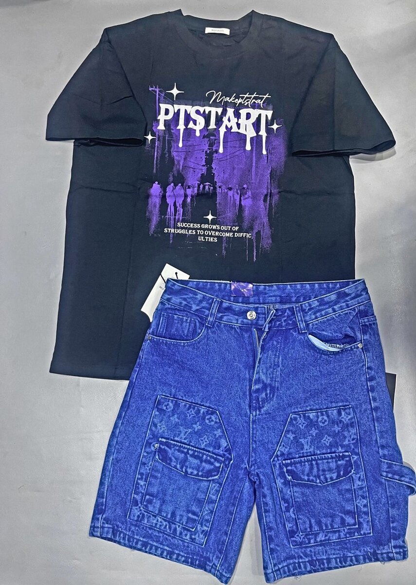 Ensemble moderne de t-shirts imprimés et shorts en jean pour un style décontracté. Idéal pour les sorties urbaines et estivales. Conçu pour offrir confort et style, c’est le choix parfait pour une allure jeune et dynamique. Disponible en plusieurs designs captivants qui attirent le regard et mettent en valeur votre personnalité.