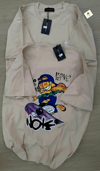 T-shirts Garfield "Skate" beige, neufs, motif cartoon et fun pour un style décontracté original.