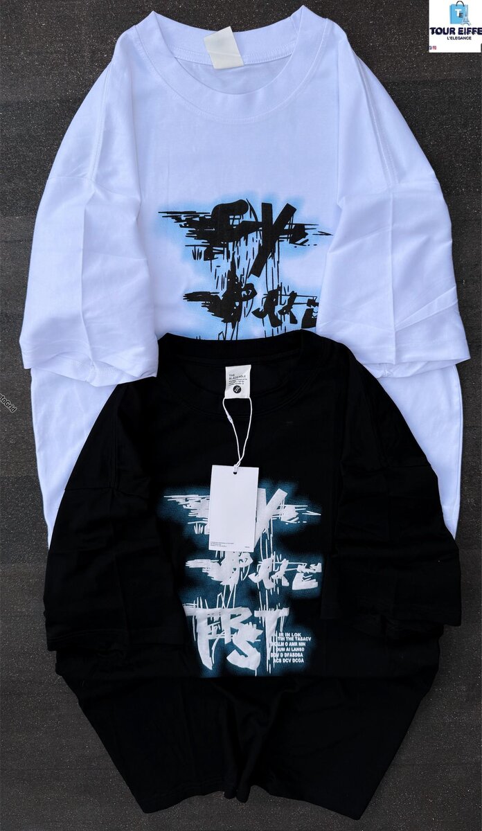 Découvrez nos t-shirts modernes avec imprimé artistique. Disponibles en noir et blanc, ils sont parfaits pour un style urbain unique. Confortables et de haute qualité, idéaux pour un usage quotidien.