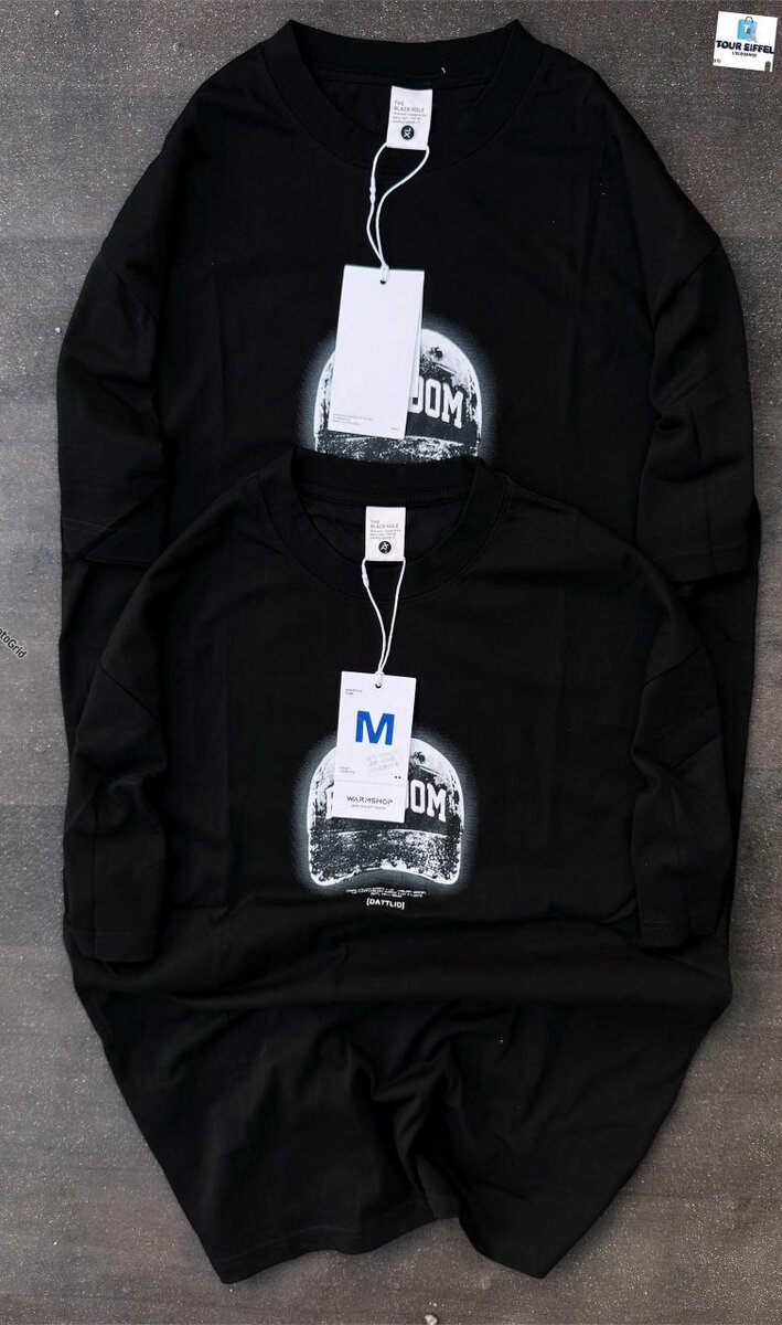 Lot de t-shirts noirs assortis avec imprimé moderne. Parfait pour un style urbain décontracté. Disponible en plusieurs tailles, idéal pour homme et femme. Confortable et facile à porter.