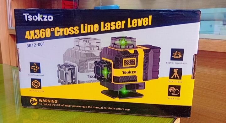 Niveau laser croix 4X360° Tsokzo pour une précision et une facilité d'utilisation. Idéal pour les travaux de construction et de rénovation. Certifié CE et FDA.