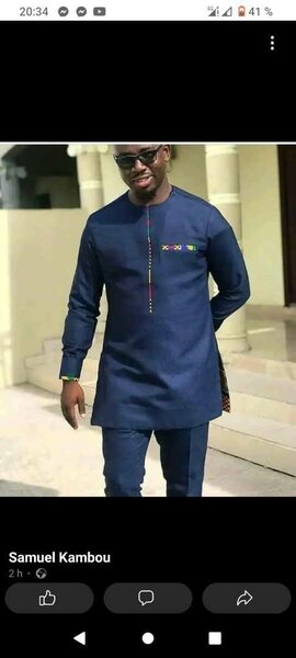 Tunique complet homme, Couture africaine, couleurs bleu foncé taille disponible :L, xL et xxL