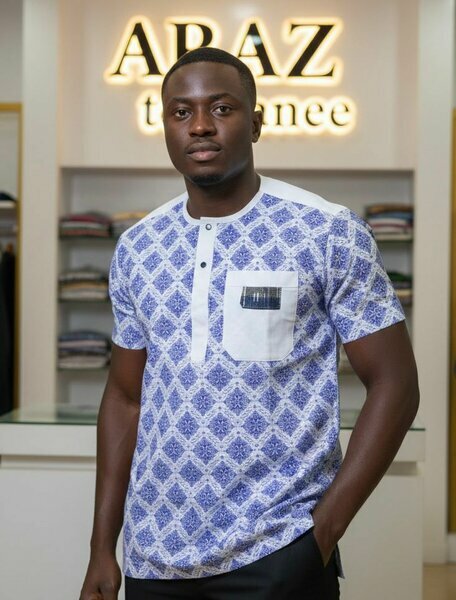 Tunique crème poche rayée homme. Style raffiné, col discret, poche tendance en tissu rayé contrastant. Produit neuf.