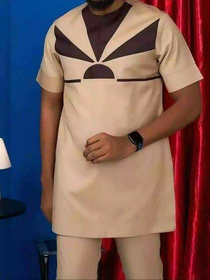 Tunique homme beige et marron, confortable et élégante, idéale pour les occasions spéciales ou le quotidien. Conçue pour les hommes qui apprécient le style et le confort.