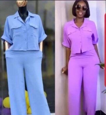 Tunique Bi-matiere ( wax & mousseline) Pantalon gros bas Élastique à la taille et fermeture éclaire Taille : S/M & L/XL 2 look en 1 ( peut se porter de 2 façon voir image )