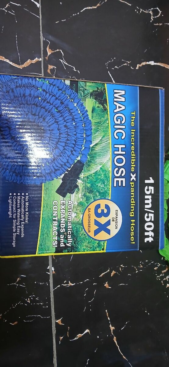 Découvrez le tuyau extensible magique de 15m, idéal pour l'arrosage efficace de votre jardin ou votre pelouse. Grâce à sa capacité d'expansion 3 fois sa taille initiale, il est facile à ranger et à utiliser. Parfait pour tous vos besoins d'arrosage, ce tuyau léger et durable est un incontournable pour les passionnés de jardinage.