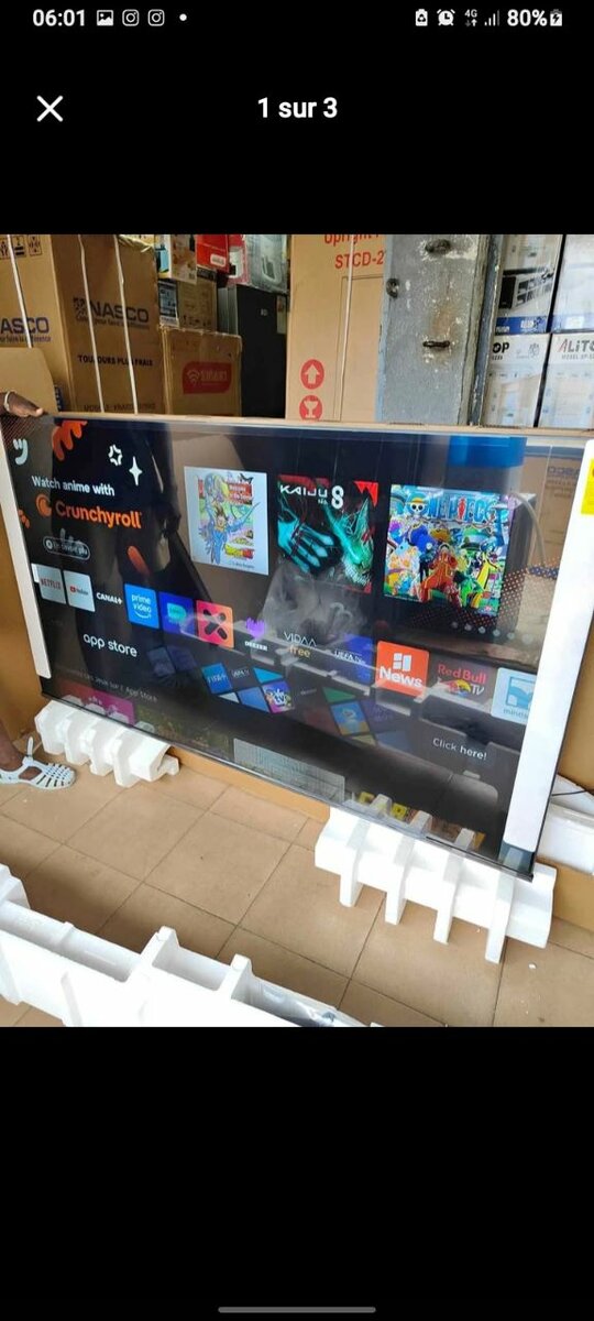 Tv Hisense VDAA 75 Pouces 4k ultra hd une résolution très claire smart tv proceseur quad core wifi direct,bleutoof, Netflix, YouTube, prime video décodeur intégrée, micro dimming , Dolby vision plusieurs fonctions et applications a bord