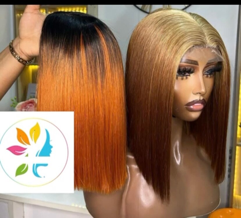 African Orange Straight Short Soft Wear Wigs 4×4 Lace Front