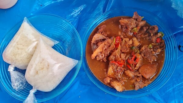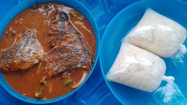 Découvrez l'authentique cuisine avec notre repas assaisonné de délices épicés, accompagné d'attiéké pour une expérience gustative complète. Idéal pour un dîner copieux ou une occasion spéciale.