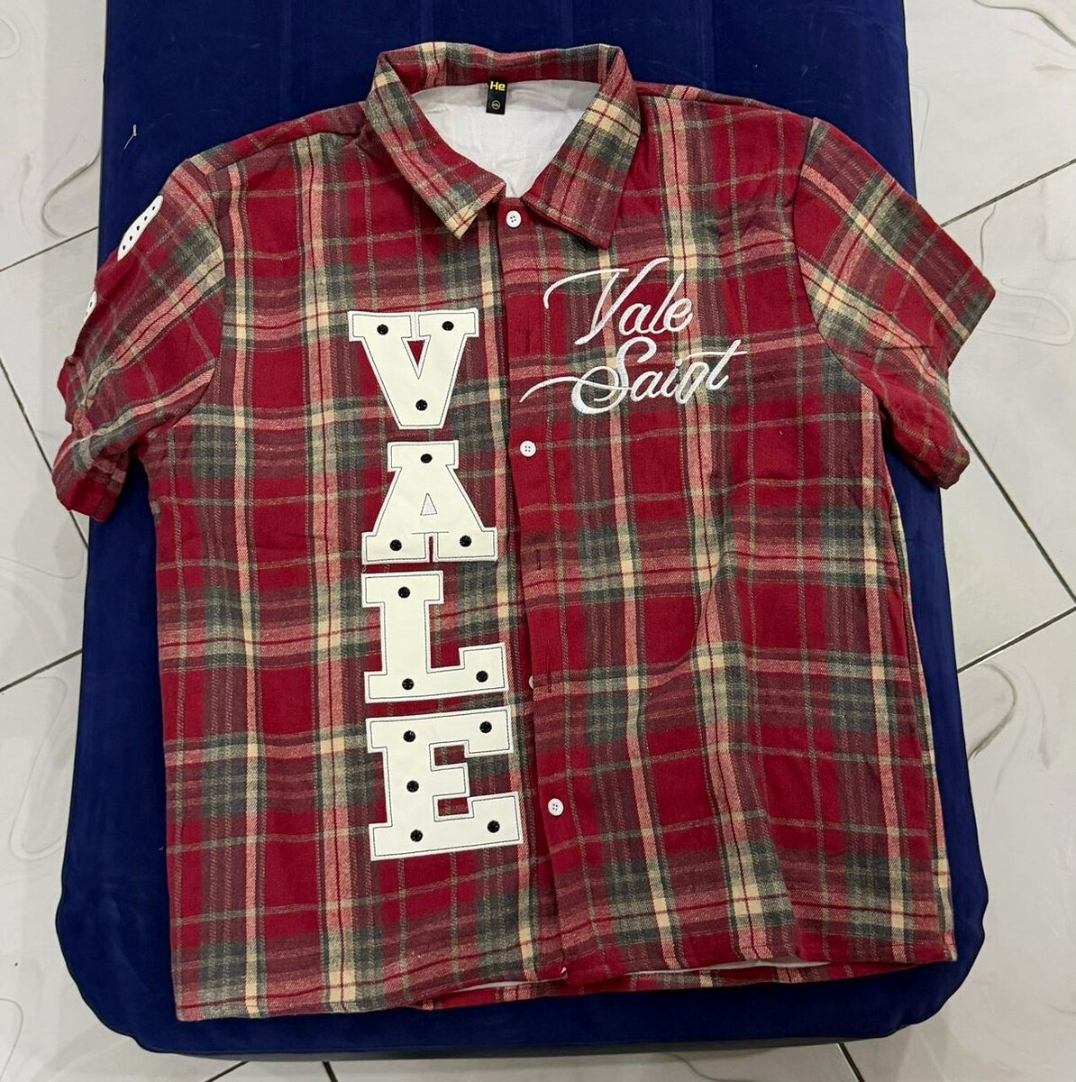 Elevate your style with this Vale Saint men's plaid shirt, featuring a classic check pattern and bold logo details. Made for comfort and versatility.